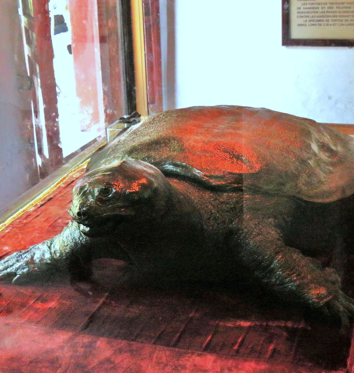 Sa dernière congénère étant morte dans les années 1970 après s'être prise dans les filets d'un pêcheur, elle est aujourd'hui empaillée et conservée au Temple de Ngoc Son, à Hanoï.