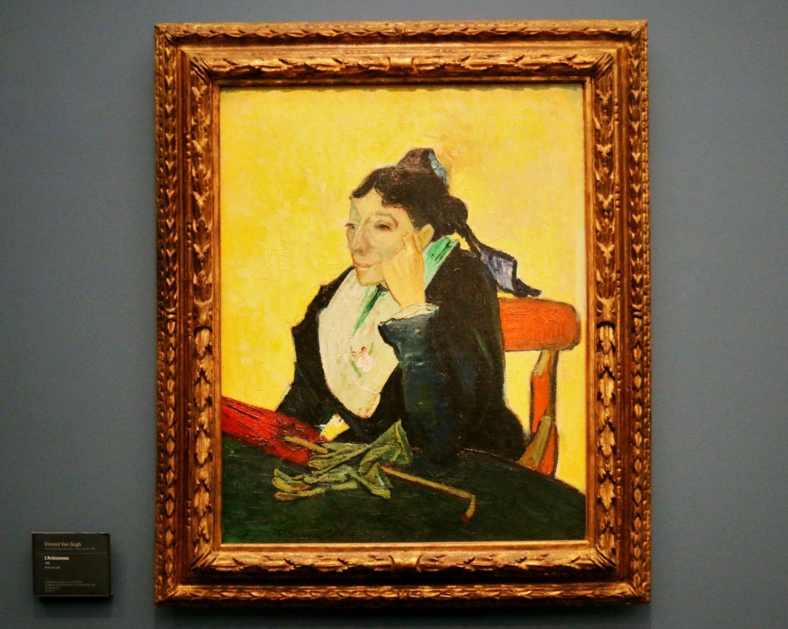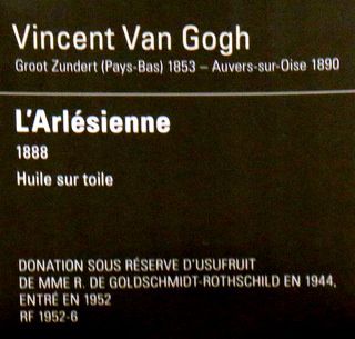 Il écrit notamment à son frère Théo : "j'ai enfin une Arlésienne, une figure sabrée dans une heure, fond citron pâle, le visage gris, l'habillement noir, noir noir, du bleu de prusse tout cru. Elle s'appuie sur une table verte et est assise dans un fauteuil de bois orangé".