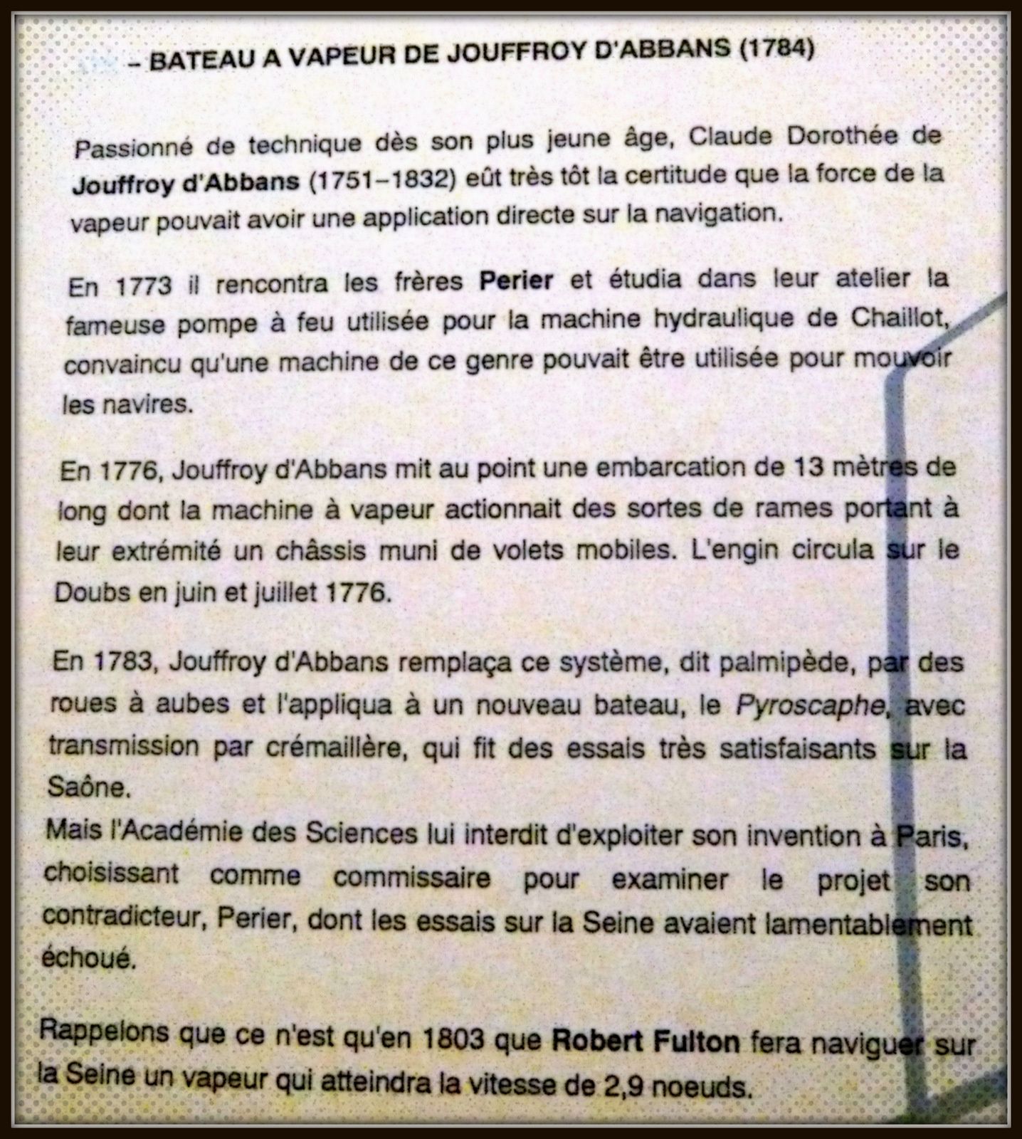 Ce dernier eût un grand succès le 09/08/1803 et fût surnommé « Jouffroy la Pompe » par ses détracteurs.