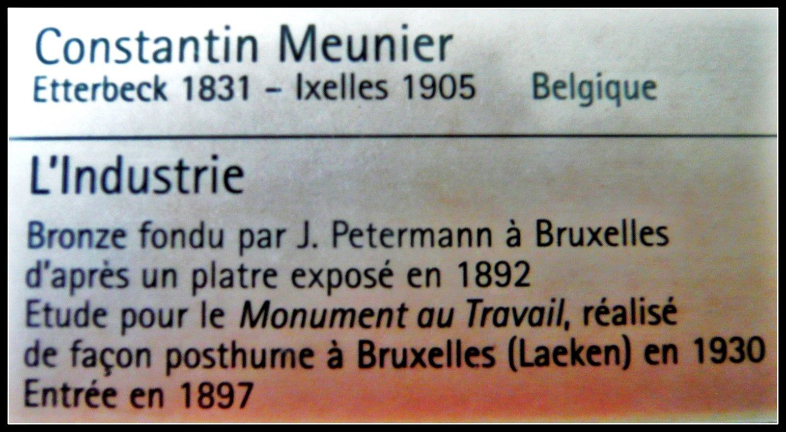 Dans les dernières années de sa vie, Constantin Meunier exécute les sculptures destinées au Monument au Travail qui ne sera édifié qu'après sa mort.